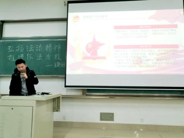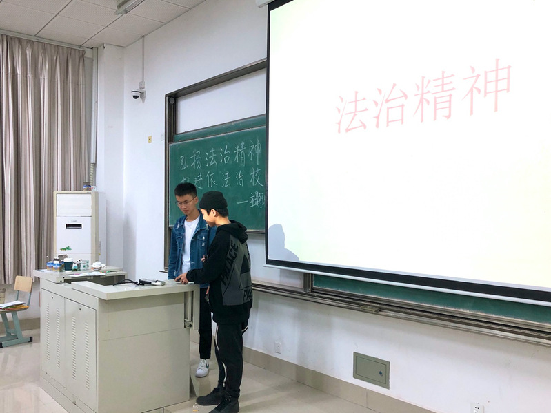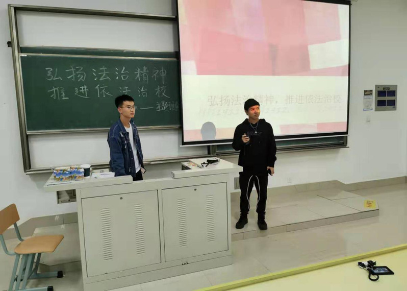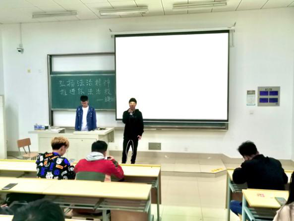 11月26日,yl23455永利大一新生在D教103开展“弘扬法治精神,推进依法治校”主题班会,辅导员程明杰老师出席会议。