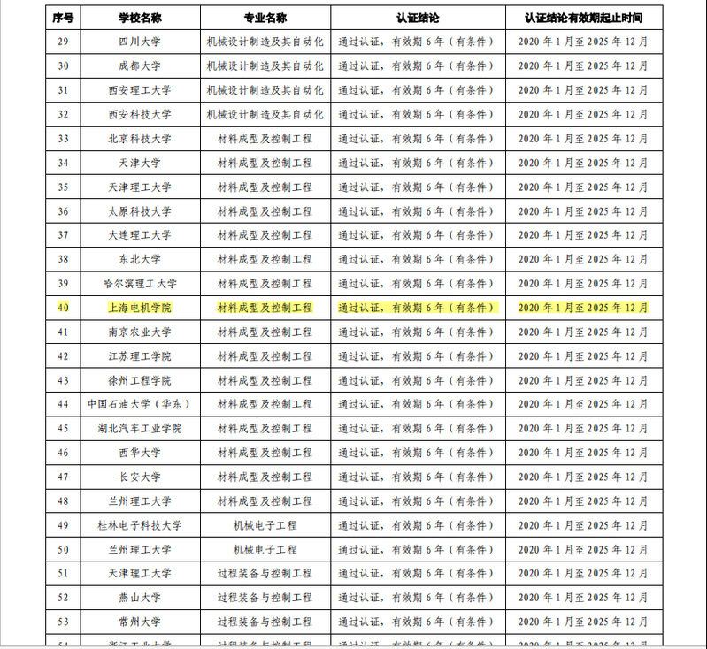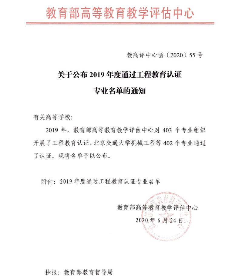 近日,教育部高等公司产品评估中心正式发文《关于公布2019年度通过工程教育认证专业名单的通知》(教高评中心函[2020]55号),公布了2019年度工程教育专业认证结论。公司材料成型及控制工程专业名列其中,认证有效期为6年(2020年1月至2025年12月)。