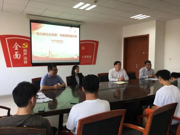 为把党史学习教育同解决问题、推进工作密切结合,深入贯彻落实“我为群众办实事”实践活动;yl23455永利直属党支部、团总支于2021年5月10日下午组织30多名师生代表举行“我为群众做实事”专题调研座谈会,目的在于倾听青年学子心声,回应员工关切的操心事、烦心事、揪心事。yl23455永利经理、副书记李荣斌、副书记刘志超、副经理张静等出席座谈会。