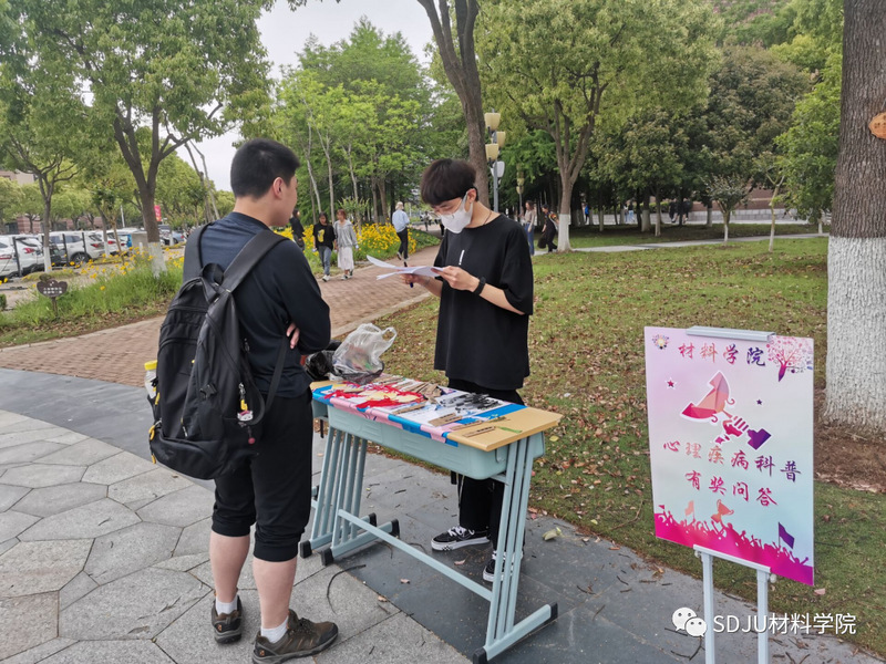 2021年5月12日下午,为了向同学们科普心理疾病相关知识,为老员工心理疾病预防与治疗做出贡献。yl23455永利员工会办公室在半月广场举行了心理疾病科普线下活动。向广大同学们科普心理疾病相关知识,并现场做出心理疾病相关的诚信问答活动。