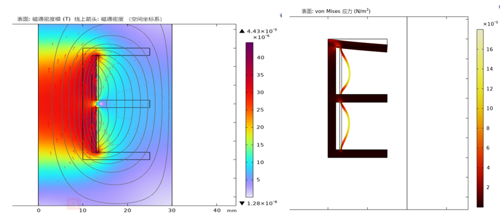 图2 研究生进行的电磁场与力学耦合仿真结果