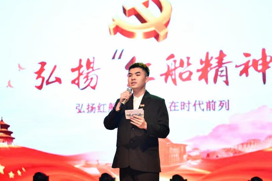在大三年级,在全校五四表彰会议上,我以“红船故事”进行了党史宣讲,激发大家对党史学习的兴致。