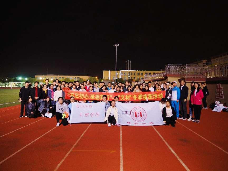 在大二年级,我们团队筹备的“不忘初心、砥砺前行”冬季夜跑活动,以竞速跑、趣味跑的形式在全校开办,得到同学们的一致好评。