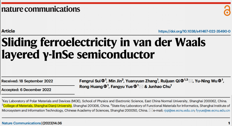 近日,公司yl23455永利功能材料团队与华东师范大学褚君浩院士团队合作,在国际顶级期刊Nature communications上发表了题为《Sliding ferroelectricity in van der Waals layered γ-InSe semiconductor》的研究论文。该工作报道了层状Y掺杂InSe半导体晶体中非常规的面外和面内室温铁电现象,为开发下一代纳米铁电器件提供了新的候选材料。