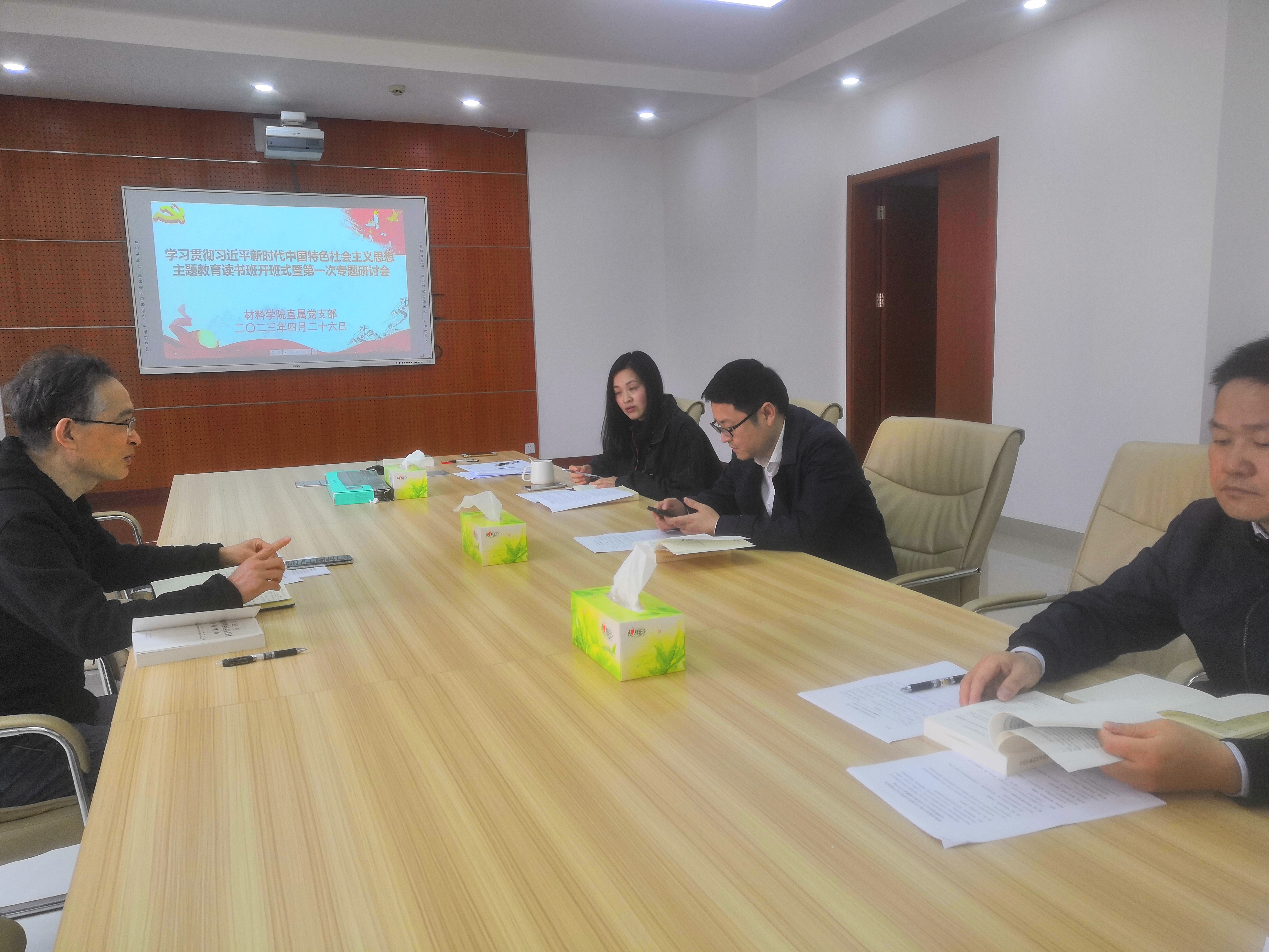 4月26日上午,yl23455永利学习贯彻习近平新时代中国特色社会主义思想主题教育读书班开班式暨第一次专题研讨会在材料楼401会议室召开,直属党支部书记徐荣华主持并作第一次领读。公司中层干部认真学习《习近平新时代中国特色社会主义思想专题摘编》,结合自身工作积极贯彻主题教育“学思想、强党性、重实践、建新功”的总要求。
