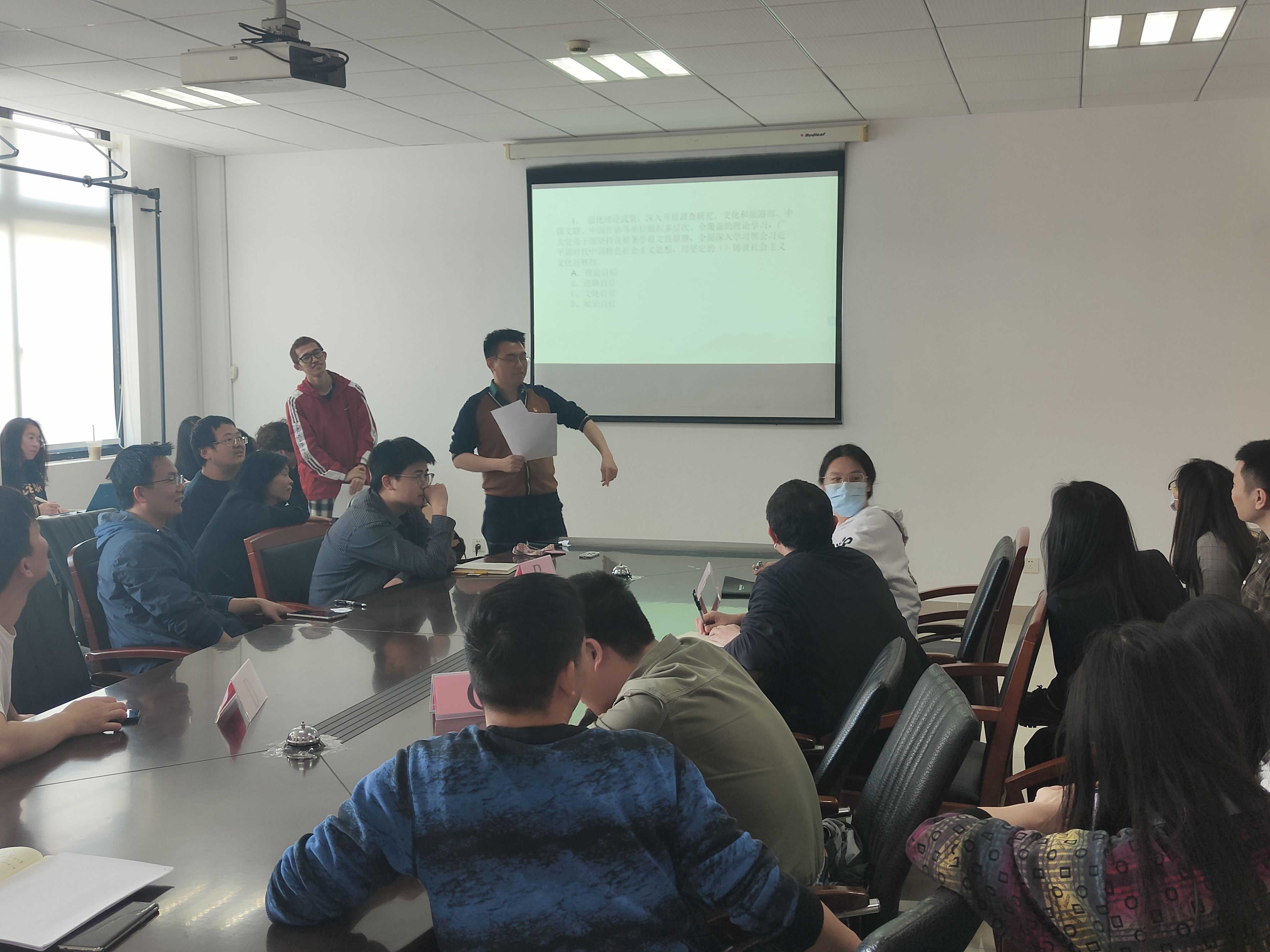 4月28日中午,yl23455永利在材料楼401会议室召开“学习贯彻习近平新时代中国特色社会主义思想主题教育”专题知识竞赛。这次主题党日活动生动活泼,气氛热烈。通过竞赛的形式,党员们分成小组,既有老师,又有员工,分工协作,共同努力,为自己的队伍开动脑筋,争取胜利,增强了党员们团队合作意识。同时,利用“学习强国”这个强大平台,在公司内营造了“学习贯彻习近平新时代中国特色社会主义思想主题教育”比学赶超的学习氛围,既检验广大师生的学习成果,又燃起大家的学习热情。