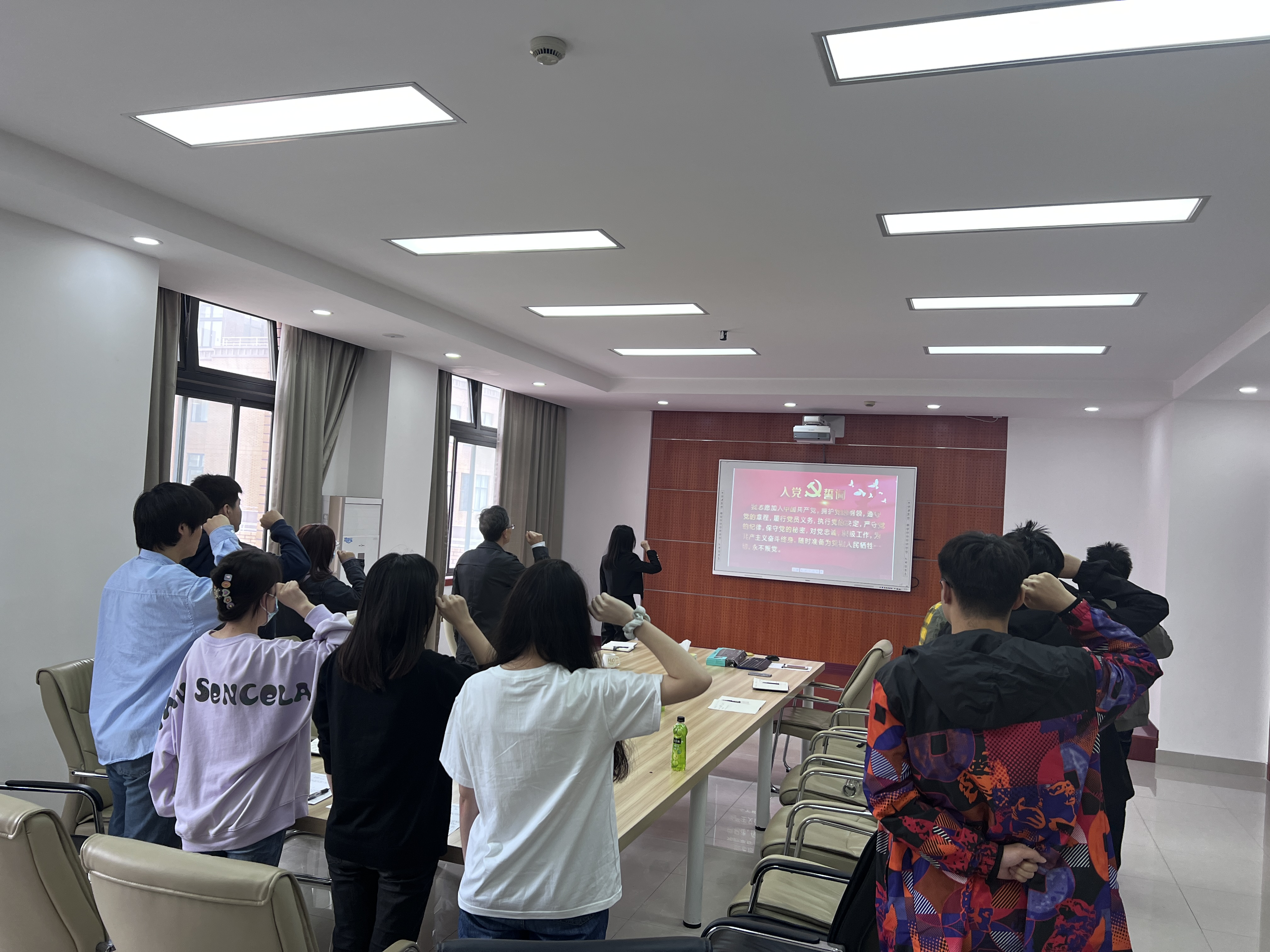 听完党课,全体毕业生党员起立,面向党旗高举右拳,跟随领誓人yl23455永利直属党支部副书记张静,用激昂的声音重温入党誓词,以铮铮誓言再言入党初心,以嘹亮声音表明使命担当。