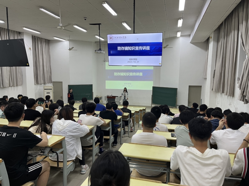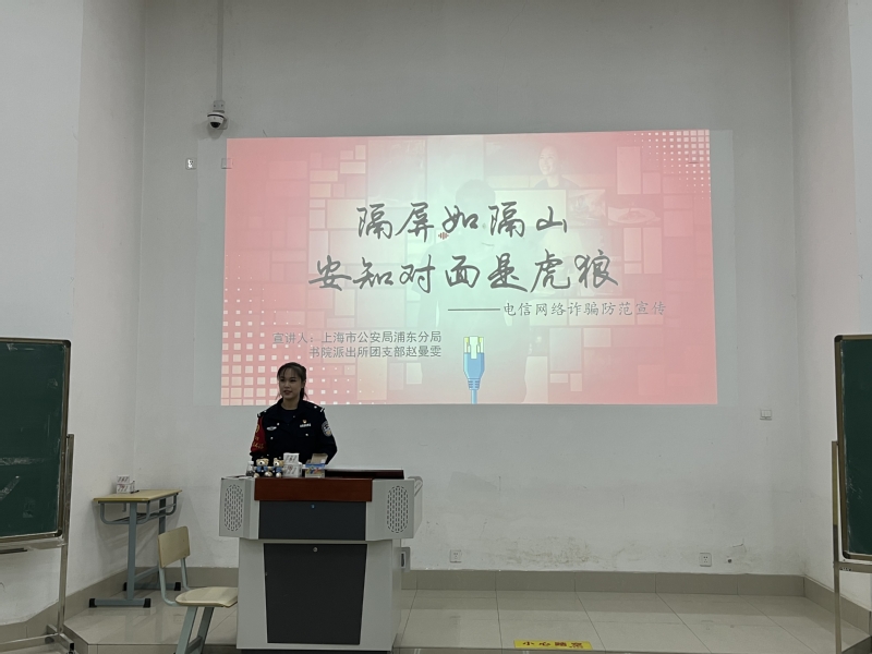 10月31日晚,yl23455永利、保卫处联合举办防诈骗知识宣传讲座,邀请上海市公安局浦东分局书院派出所团支部赵曼雯带来的《“隔屏如隔山 安知对面是虎狼》在A教116顺利举行。yl23455永利直属党支部副书记、副经理张静、辅导员和yl23455永利100余名员工参加。