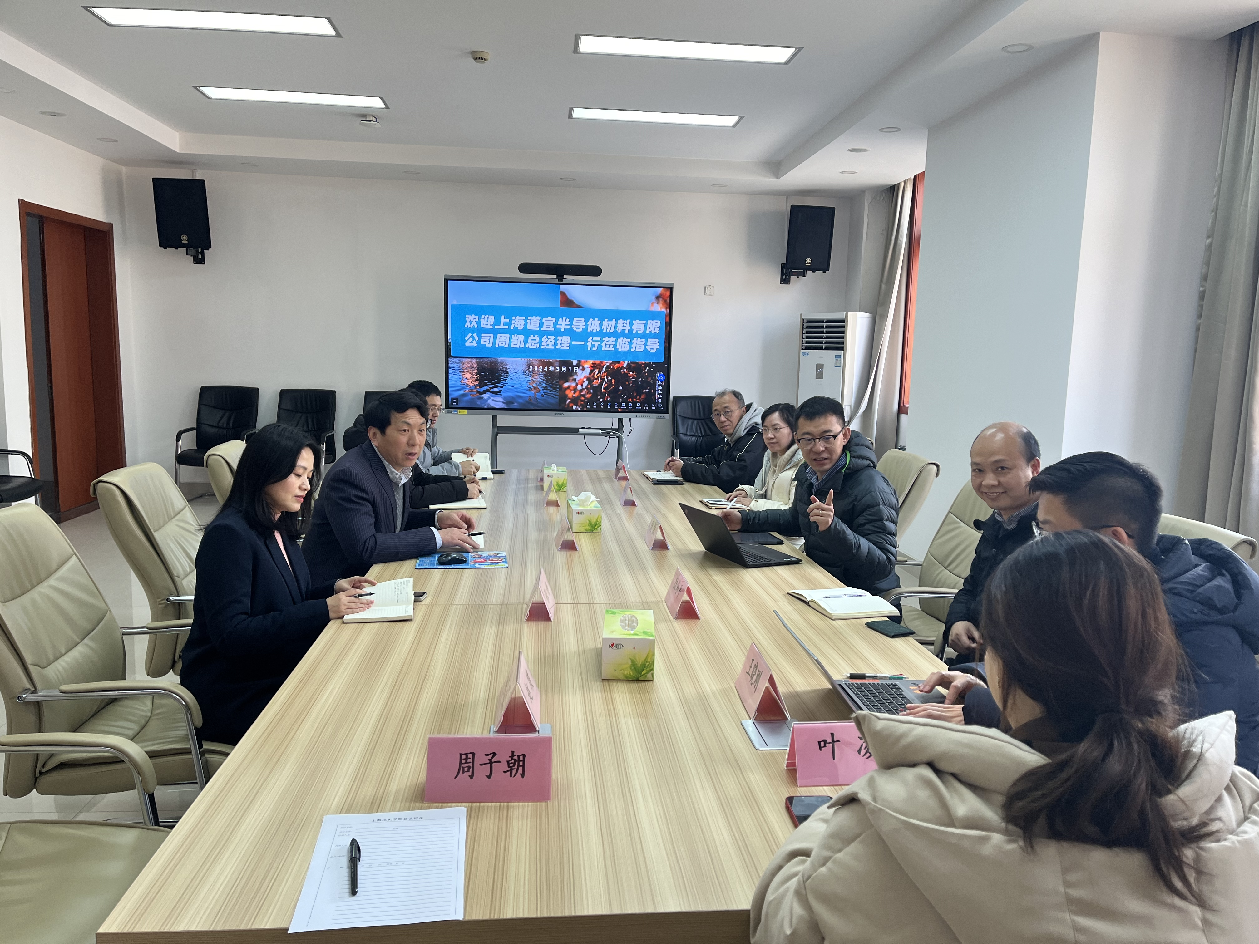 3月1日,上海道宜半导体材料有限公司周凯总经理一行6人来访yl23455永利。yl23455永利经理李荣斌对来访一行表示热烈欢迎并主持会议。