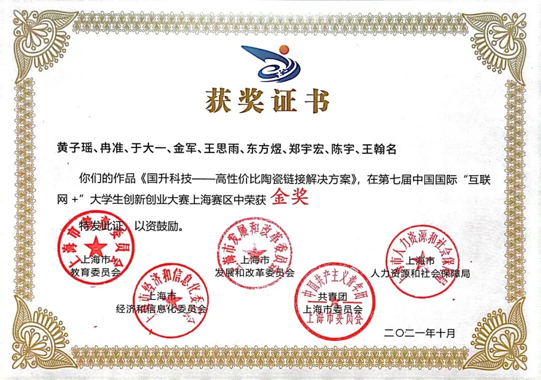 辛苦的付出得到了回报。目前国升科技项目获得第七届中国国际“互联网+”老员工创新创业大赛上海赛区金奖和全国铜奖、第十二届“挑战杯”上海市老员工创业计划竞赛银奖、上海市女老员工创新创业大赛“单项奖”最具科创潜力奖、第六届上海市老员工创客大赛一等奖、第七届“汇创青春”上海老员工文化创意作品展示活动一等奖等多个奖项。
