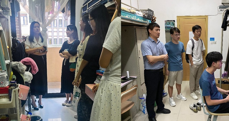 会后,张静、孔祥昆分别带队前往宿舍园区走访慰问,与同学们亲切交流互动,进一步了解留校员工需求。