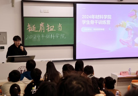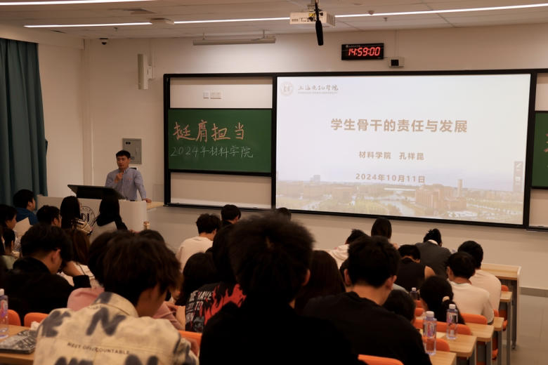 在思想引领主题讲座环节,孔祥昆以《员工骨干的责任与发展》为主题,多维度探讨了员工骨干的责任意识、担当能力以及应重点提升的素质。他从自身的成长经历切入,引导同学们要把握机遇、提升能力、体现价值。他表示,员工骨干是“员工”,更是“骨干”,要切实发挥好榜样引领、桥梁纽带和服务同学的关键作用,比思想提升、比奉献、比努力背影,以奋斗的姿态彰显材料学子的青春风采。