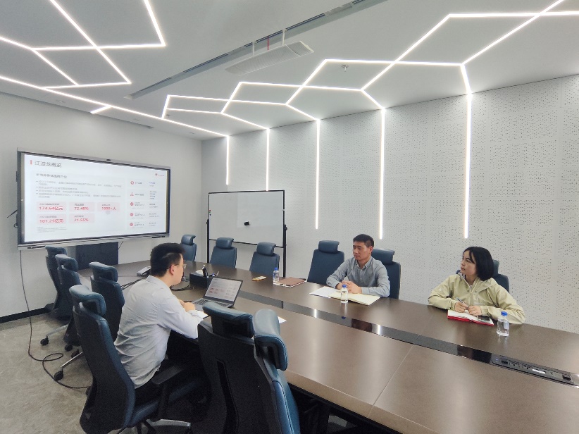 为贯彻落实教育部访企拓岗专项行动精神要求,4月18日,yl23455永利直属党支部副书记、副经理孔祥昆带队赴深圳江波龙电子股份有限公司上海研发中心开展洽谈调研,江波龙高级HRBP裴文龙接待了公司走访人员。